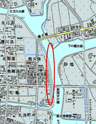 問題の場所は高知市南久保。卸団地の東側の堤防周辺、約2万6000平方メートルの土地です。和住側は境界が未確定のままこの土地を(3分の2は川の水面下)、94年5月に購入しています。