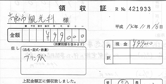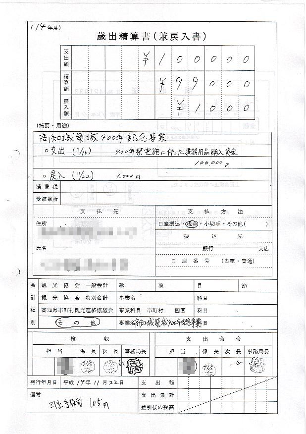 プリンターの領収書は「高知市観光科(ママ)」宛 会計がぐちゃぐちゃになっている実態が現れている