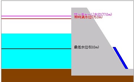 同ダムは水位が最低水位である53メートルを下回ると、放水口に水面が届かなくなることから下流への放流ができなくなる構造。県鏡ダム管理事務所では下流に放流する水量をさらに減らして水位の低下を先延ばしして雨を待つ方針。