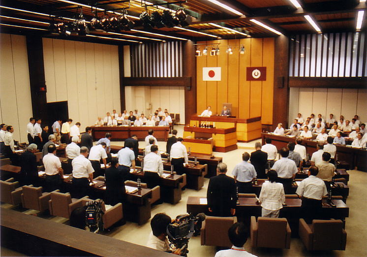 自民党の中西哲議員が監査請求動議の提案理由を行い、県民クラブの坂本茂雄議員が賛成討論に立ちましたが、坂本議員が討論の中で、県議会の全会派の意思で提出した動議とは関係のない「舌の根も乾かぬうちに、答弁をひるがえす知事の豹変ぶりに、議員だけでなく県民だれもが、その目を耳を疑った」などという橋本大二郎県知事への攻撃を展開したため、田頭文吾郎議員(日本共産党と緑心会)が議事進行動議を提出し賛成討論として不適切であることを指摘。この発言に対し元木益樹議員(自民党)が「議長の許可を得ていない。懲罰すべきだ」などといいがかりをつけたため、一時議場は騒然となりましたが、監査請求動議は全会一致で可決されました。