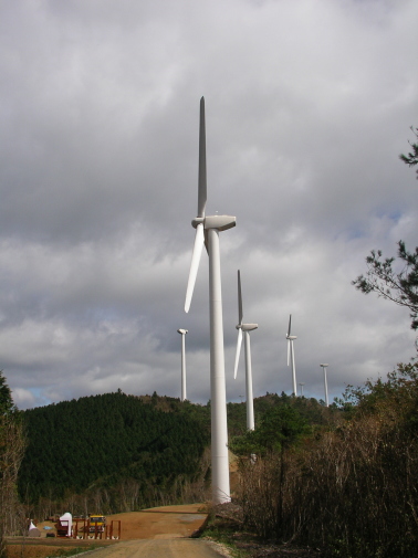 津野町と旧仁淀村を分ける鶴松森(1100メートル)から東に伸びる稜線に20基の風力発電所を設置する計画がすすんでいます。設置者は東京の総合商社双日や大阪ガス。風車は三菱重工製、工事は大旺建設で、四国電力への売電が目的です。