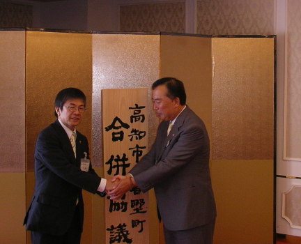 高知市と春野町の合併をすすめるための合併協議会が10月17日の第1回協議会を皮切りに始まりましたが、協議会の立ち上げを前に氏原嗣志春野町長が違法墓地問題について「外野から弓矢が射られた」と公言したり、合併期限を一方的に平成20年1月と決めつける発言をしていたことが明らかになっています。そこには違法墓地、ゴミ処理の一部事務組合加入問題、ゴミ収集業務の同和団体への違法な覚え書きによる委託など合併にむけた重大な課題を真摯に解決していく姿勢を見ることはできません。