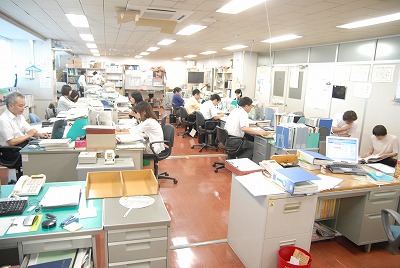 これを周辺の貸しビルと比べてみます。労働金庫本店などが入る「こうち勤労センター」(本町4丁目1番32号)5階に入っている県商工労働部県産品ブランド課の加志崎万蔵課長によると「電気や水道代を除いて家賃は月額29万7965円。面積は106・2平方メートル(32坪)なので坪当たり9000円くらいになる。このあたりの相場は坪1万円から1万2000円くらいなので安いほうだと思う」。