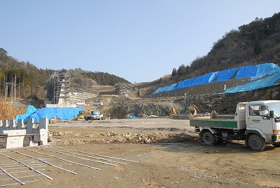 | 日高村本村の建設現場。右斜面が崩壊した(09年1月19日) |