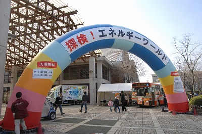 会場入口にはエネルギーワールドのゲートが(2月8日、ぢばさんセンター)