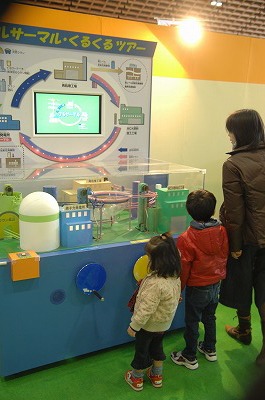 2月7、8日、高知市布師田のぢばさんセンターで開催された省エネルギーをテーマにした「エネルギー&エコロジー博覧会」(経済産業省四国経済産業局主催)会場で、子供を原子力発電に馴れさせ、抵抗感をなくすためのPRイベント「エネルギーワールド」(※)が抱き合わせて開催され、2日間で12800人が参加しました(四国経産局発表)。会場は両イベントに一応の間仕切りはあるものの、省エネ体験イベントに参加した子供が自動的に原発のPRコーナーに「対流」する配置になっており、「省エネ・エコロジー」から「原発」へと子供を意図的に誘導するイベントになっていました。