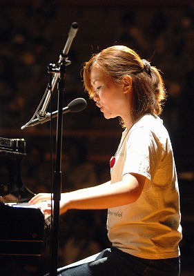 集会の第一部は、JIM−NET(日本イラク医療支援ネットワーク)スタッフ・大嶋愛さんによるピアノの弾き語りと映像を使いながらのイラクの現地報告。