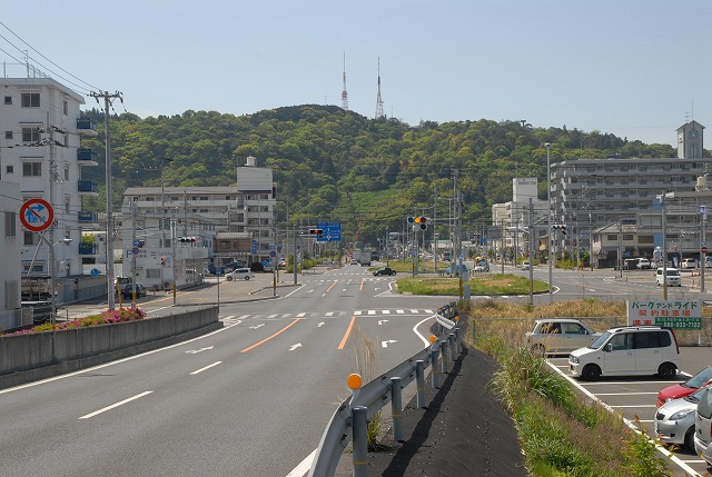 | 高知市高須新町 この周辺も2階建てとなる。正面の五台山山腹にはトンネル4本 |