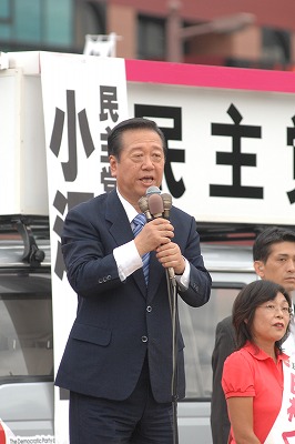 | 8月28日、高知市中央公園で演説する小沢民主党代表代行 |