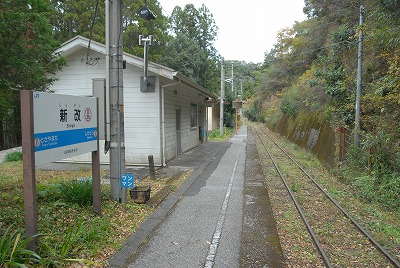 高松方面に向かう上り列車は、本線から新改駅に入り停車。発車時には後進で引込み線に入り、再び前進して本線に合流して繁藤駅へ。
