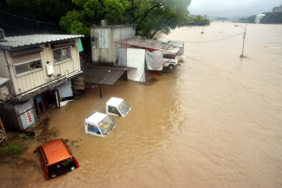 また鏡川、仁淀川、物部川などが、上流域の大量降雨によって大きく増水したため、支流が逆流して多くの浸水被害が発生しました。(2014年8月10日、高知民報) |