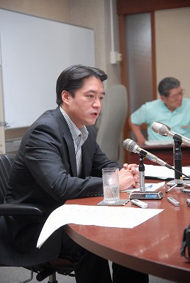 | 緊急プランを公表する尾崎知事(2008年7月1日) |