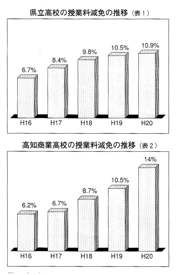 ※2009年度から生保受給世帯の全免を廃止し、生保から支給される授業料相当額の給付に切り替えることになっている。(2009年3月29日 高知民報) |